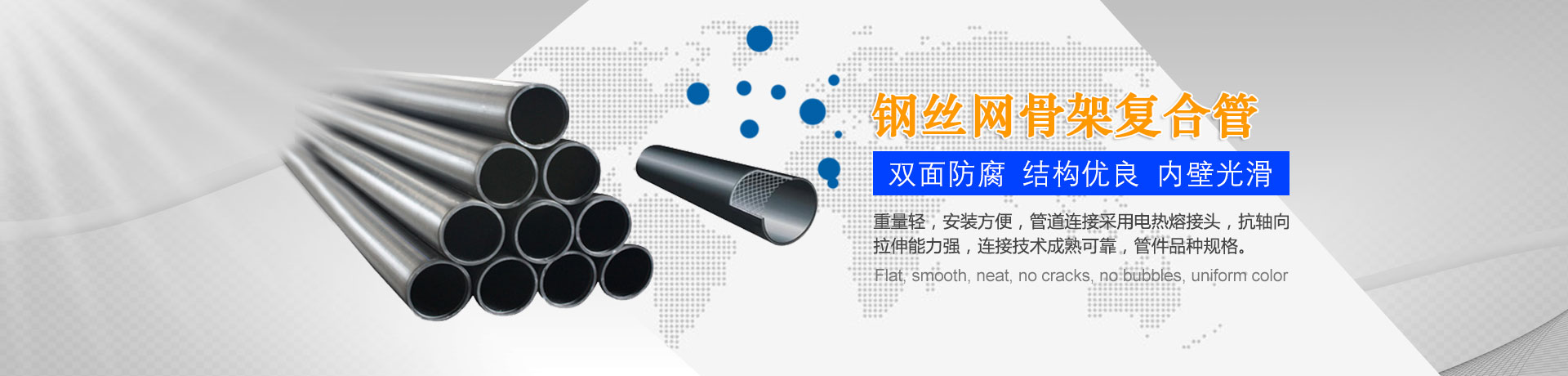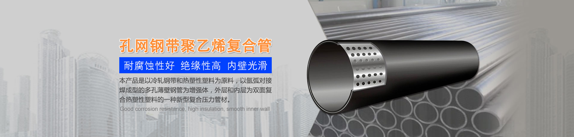 我們主要生產(chǎn)銷售:鋼絲網(wǎng)骨架復(fù)合管、鋼絲網(wǎng)骨架聚乙烯復(fù)合管、孔網(wǎng)鋼帶聚乙烯復(fù)合管、鋼骨架聚乙烯塑料復(fù)合管、電熔管件、HDPE中空壁纏繞管、HDPE內(nèi)肋增強螺旋波紋管、HDPE結(jié)構(gòu)壁增強B型管等一系列產(chǎn)品。復(fù)合管以其特有的防腐蝕、耐磨、耐高溫、抗嚴寒、耐壓、抗蠕變、穩(wěn)定性好、安裝方便等特點,逐步取代各類金屬管件和塑料管件,被應(yīng)用于消防、石油、化工、供水、采礦、海水輸送等領(lǐng)域...